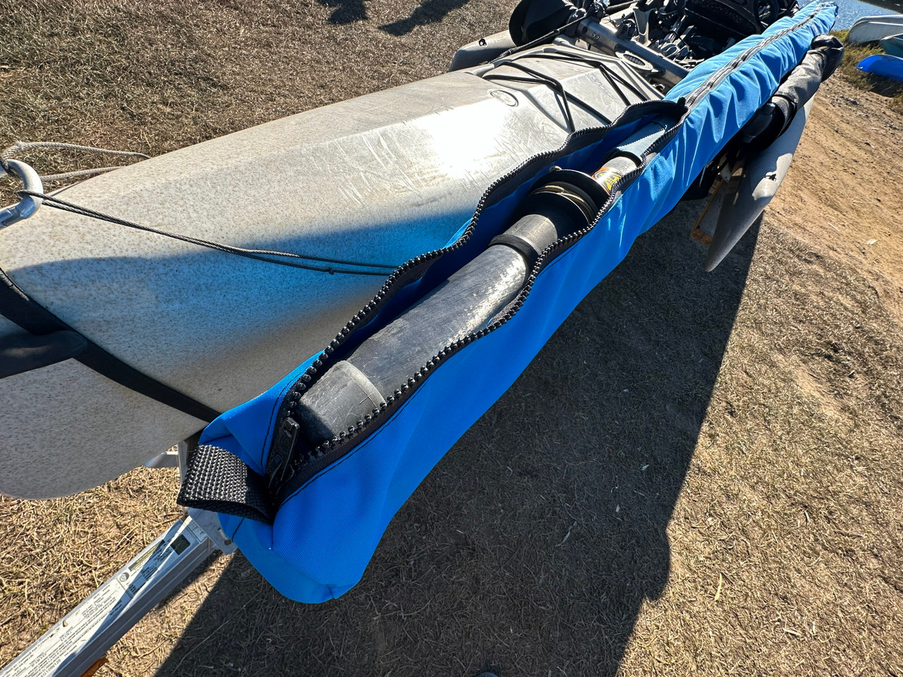 The bag is generously sized to hold the mast - with the rolled sail attached for the Hobie® Mirage Tandem Island Kayak / Sailboat. The bag can be built in any of our three stock cover fabrics (fabric and color can be chosen to match your boat cover). Closure is a full-length #10 Vislon zipper with two corrosion-resistant zipper cars.