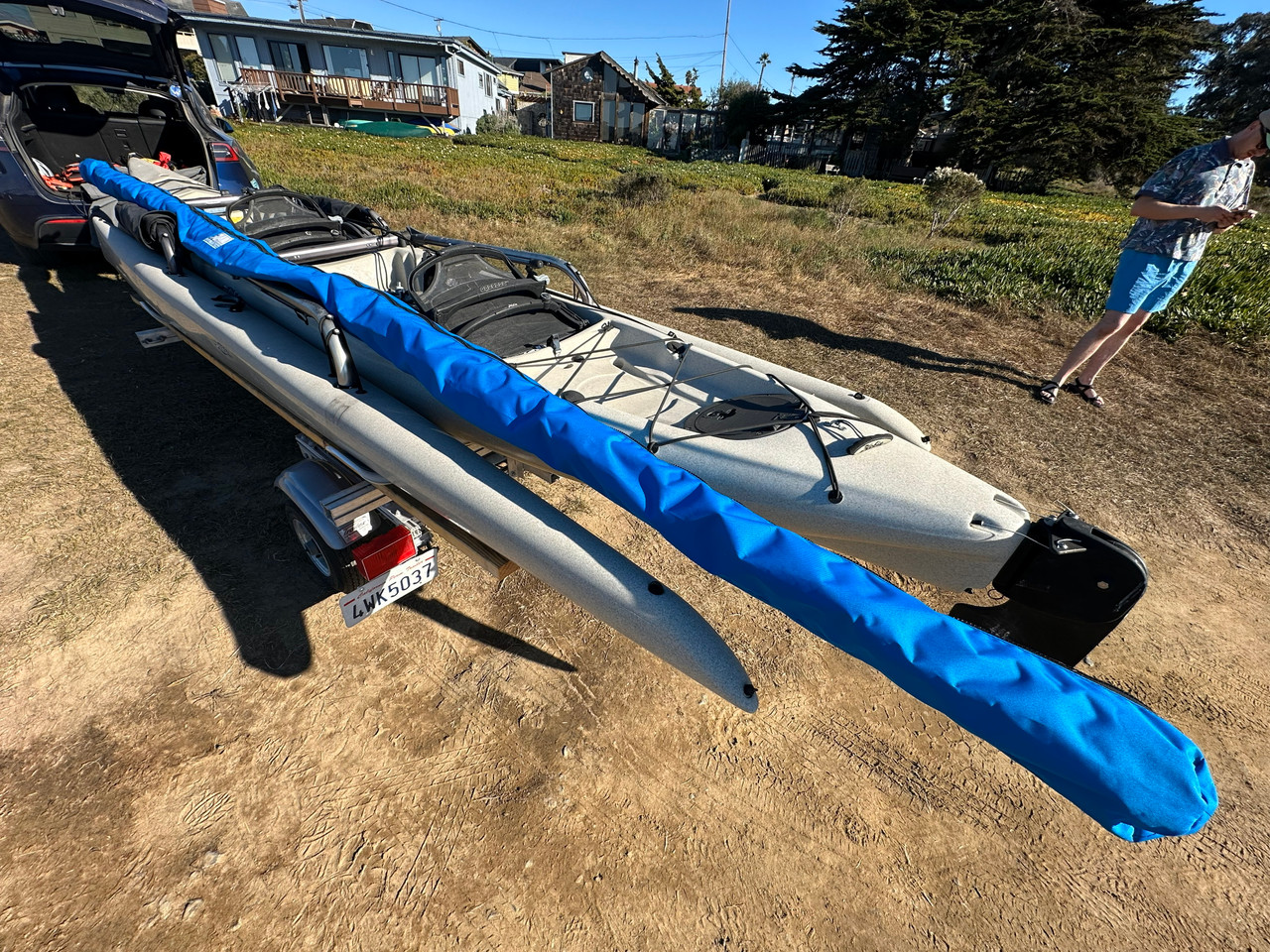 This is a sewn bag for a Hobie Mirage Tandem Island Mast and Furled (rolled-up) sail, with full-length zipper.