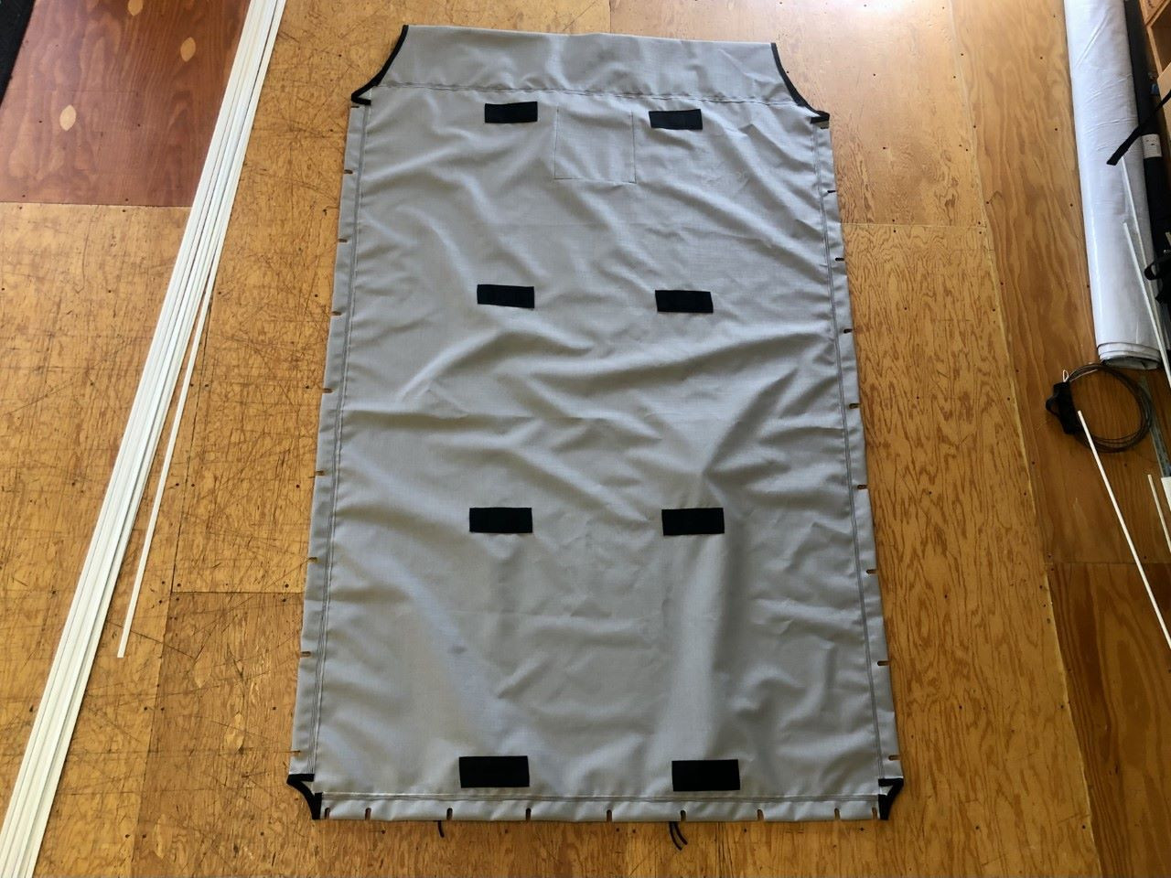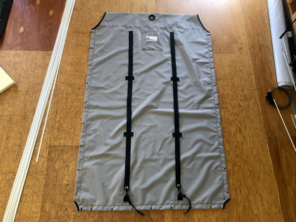 - Zippered Pocket - A larger zippered pocket perfect to hold water bottles, lunch, or sunscreen. The pocket dimensions are roughly 15"x18" and 4" tall. Dimensions may vary slightly depending on the trampoline because of other things getting in the way of a bigger pocket such as hiking straps and lacing grommets, trapeze grommets, jib strop grommets etc. We put the pocket inboard of the hiking straps on Hobie 14 and Hobie 16's on the starboard side of the trampoline. Prindle trampolines will have the zippered pocket on the port side of the trampoline inboard of the hiking straps and opposite the standard halyard pocket we include on all trampolines.